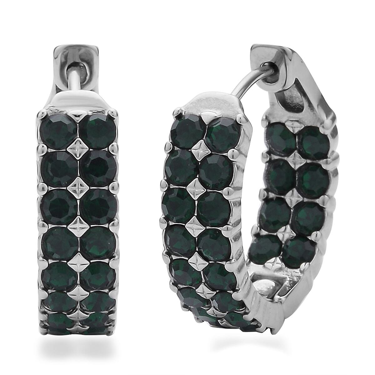 Neon Green Austrian Crystal Inside-out Hoop Earrings in Stainless Steel , Tarnish-Free, Waterproof, Sweat Proof Jewelry