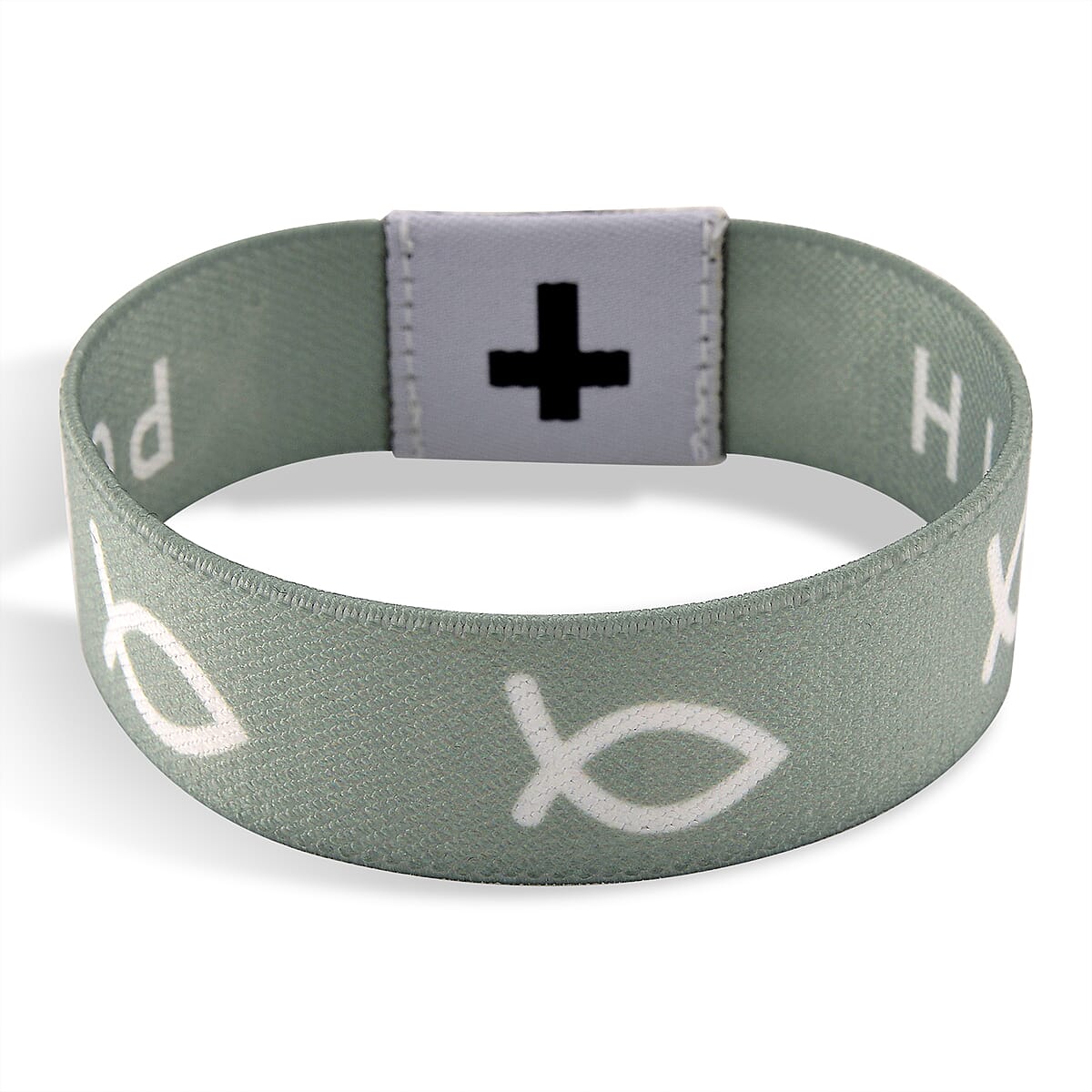 NFC Scan (Daily Bible Verse) Polyester Stretch Bracelet - Green (7-8In)