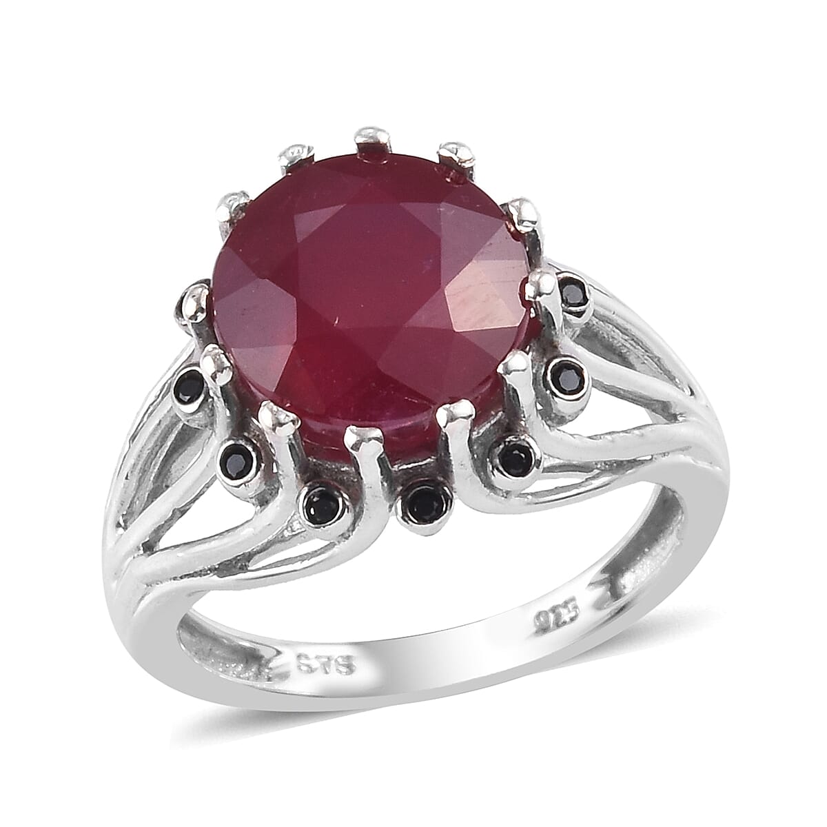 Niassa Ruby (FF) and Natural Thai Black Spinel Ring in Platinum Over Sterling Silver (Size 6.0) 3.50 ctw