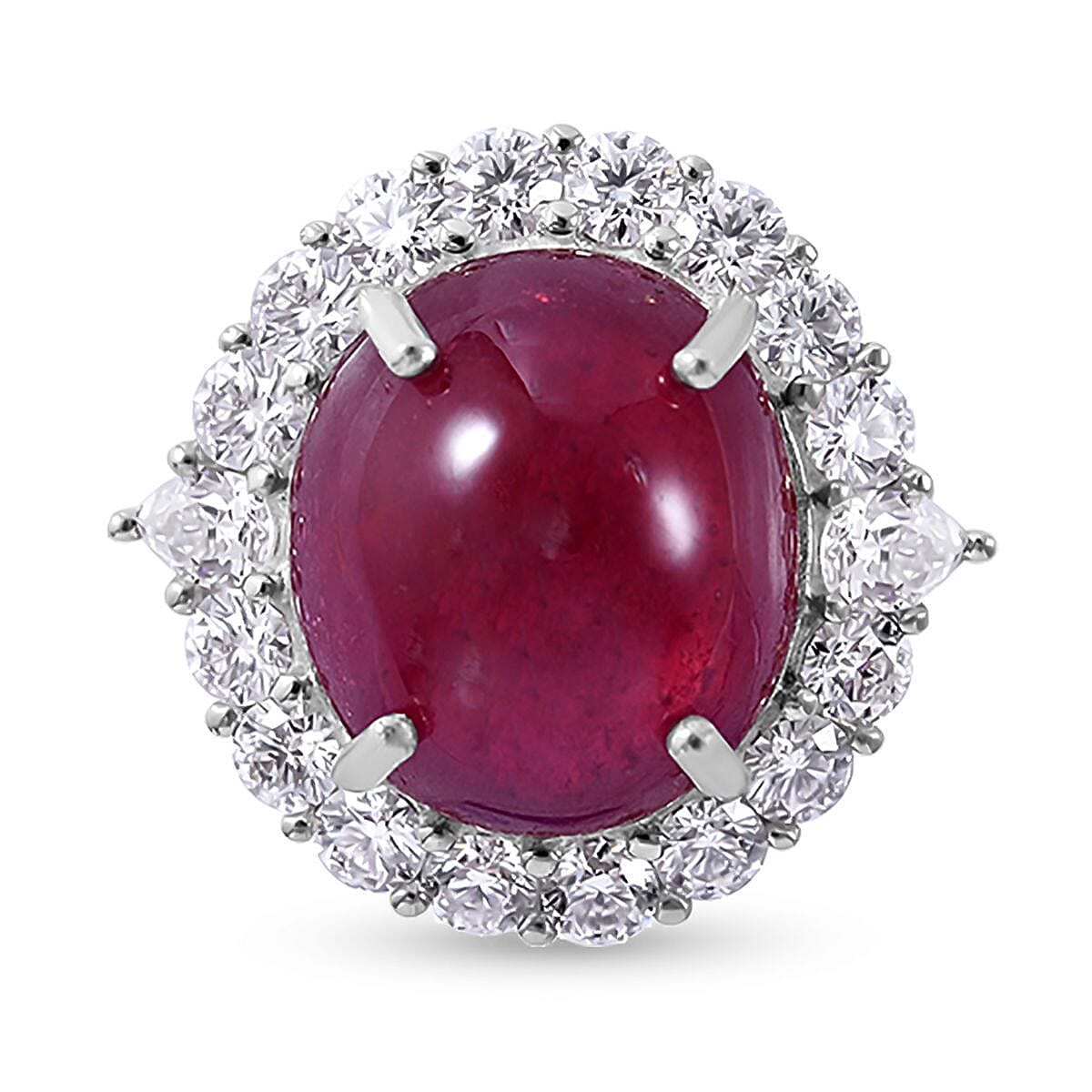 Niassa Ruby (FF) and Moissanite Halo Ring in Platinum Over Sterling Silver (Size 6.0) 19.40 ctw