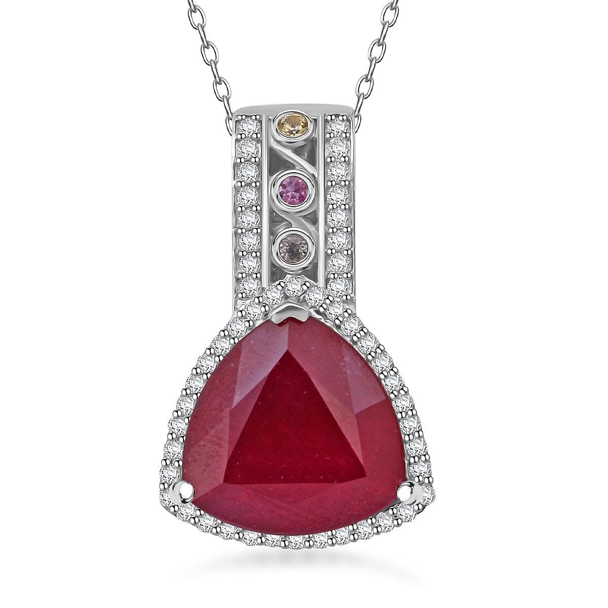 Niassa Ruby (FF) and Multi Gemstone 10.25 ctw Majestic Crown Pendant Necklace in Rhodium Over Sterling Silver 20 Inches