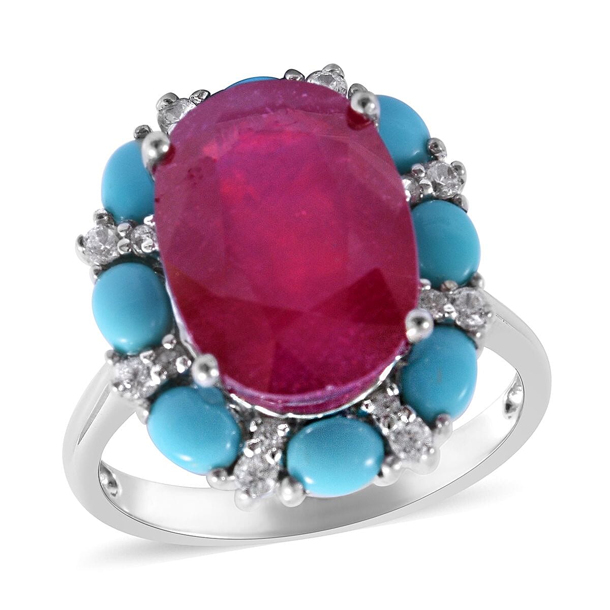 Niassa Ruby (FF) and Multi Gemstone Ring in Platinum Over Sterling Silver (Size 9.0) 11.50 ctw