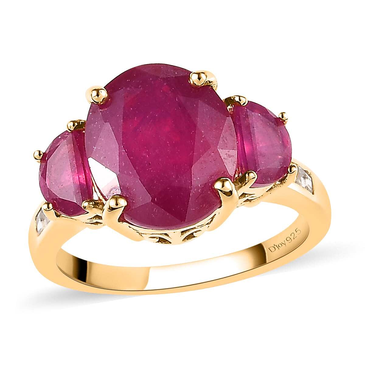 Niassa Ruby (FF) and White Topaz Trilogy Ring in Vermeil Yellow Gold Over Sterling Silver (Size 7.0) 8.90 ctw