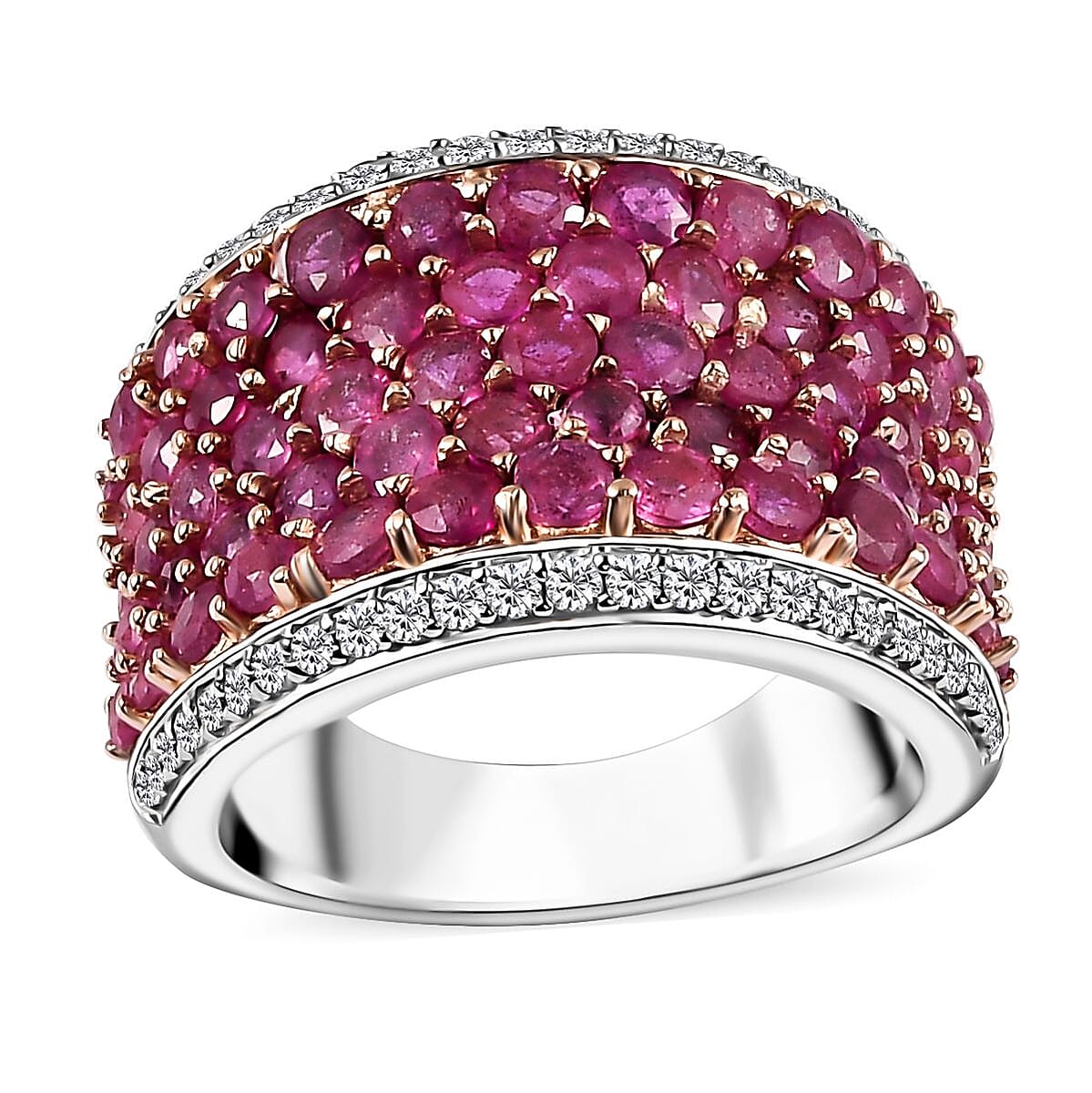 Niassa Ruby (FF) and White Zircon Cluster Ring in 14K RG and Rhodium Over Sterling Silver (Size 8.0) 5.75 ctw