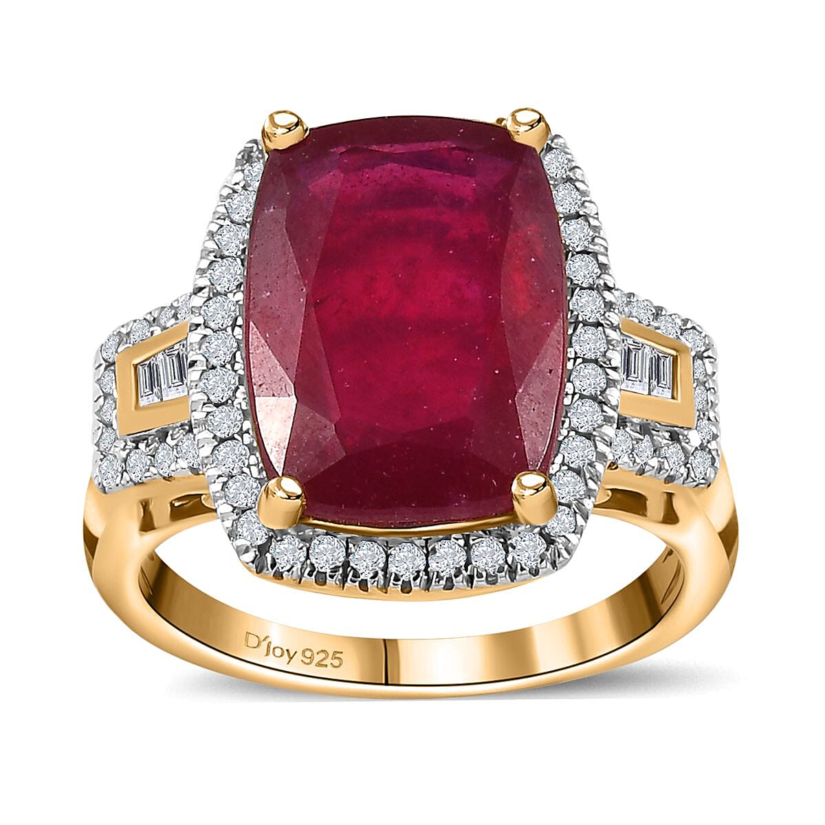 Niassa Ruby (FF) and White Zircon Halo Ring in Vermeil Yellow Gold Over Sterling Silver (Size 10.0) 11.60 ctw (Del. in 8-10 Days)