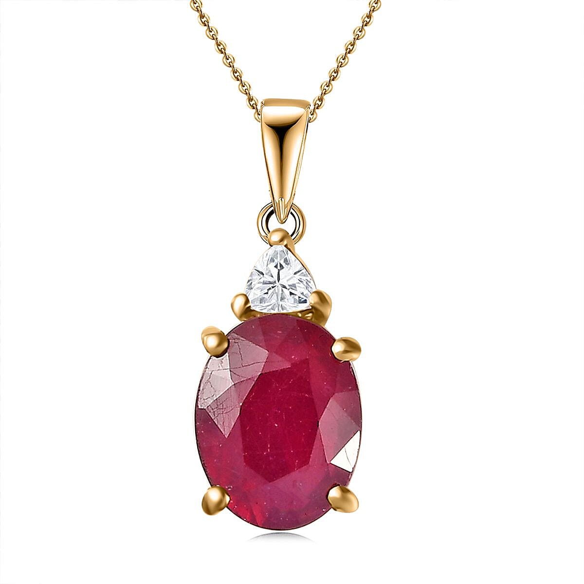 Niassa Ruby (FF) and White Zircon Pendant Necklace 20 Inches in 18K Yellow Gold Vermeil Over Sterling Silver 3.15 ctw