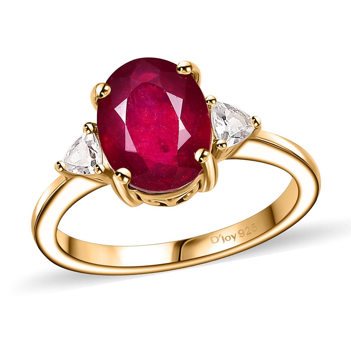 Niassa Ruby (FF) and White Zircon Ring in 18K Vermeil Yellow Gold Over Sterling Silver (Size 8.0) 3.10 ctw
