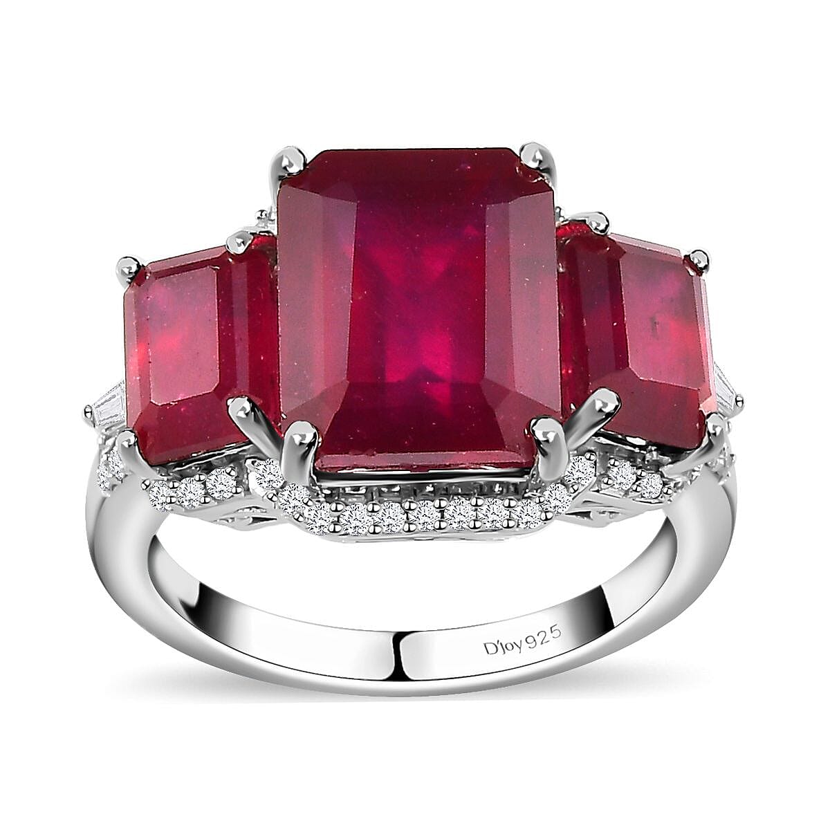 Niassa Ruby (FF) and White Zircon Ring in Platinum Over Sterling Silver (Size 10.0) 11.90 ctw