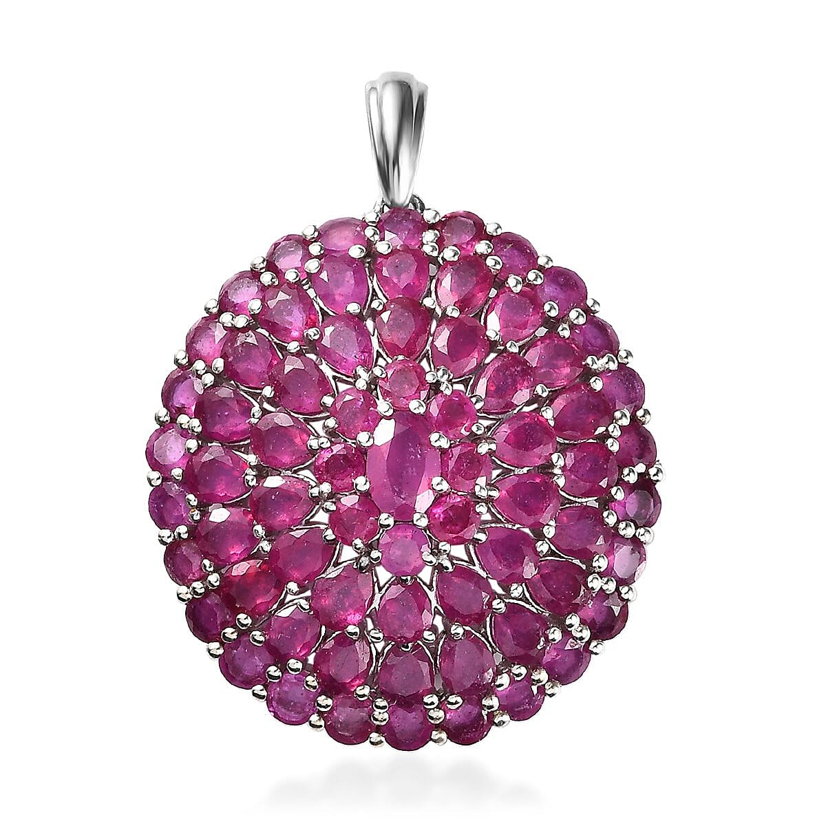 Niassa Ruby (FF) Cluster Pendant in Platinum Over Sterling Silver 14.00 ctw