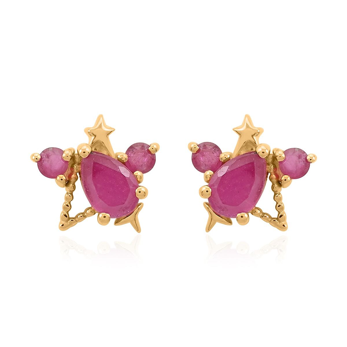 Niassa Ruby (FF) Wish Upon A Star Cluster Stud Earrings in Vermeil Yellow Gold Over Sterling Silver 1.30 ctw