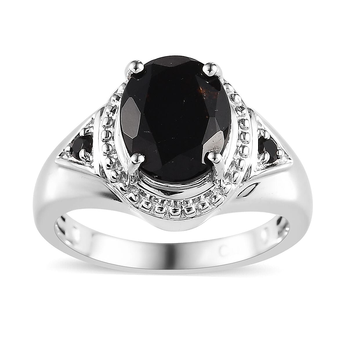 Nigerian Black Tourmaline and Thai Black Spinel Ring in Platinum Over Copper 3.10 ctw