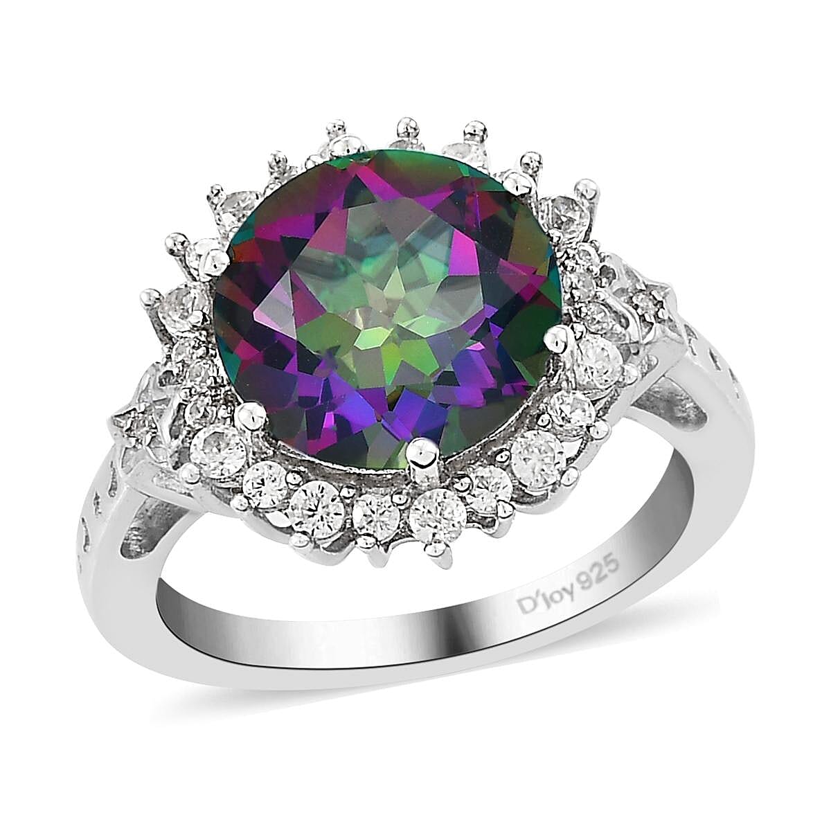 Northern Lights Mystic Topaz and Natural White Zircon Halo Ring in Platinum Over Sterling Silver (Size 10.0) 6.50 ctw