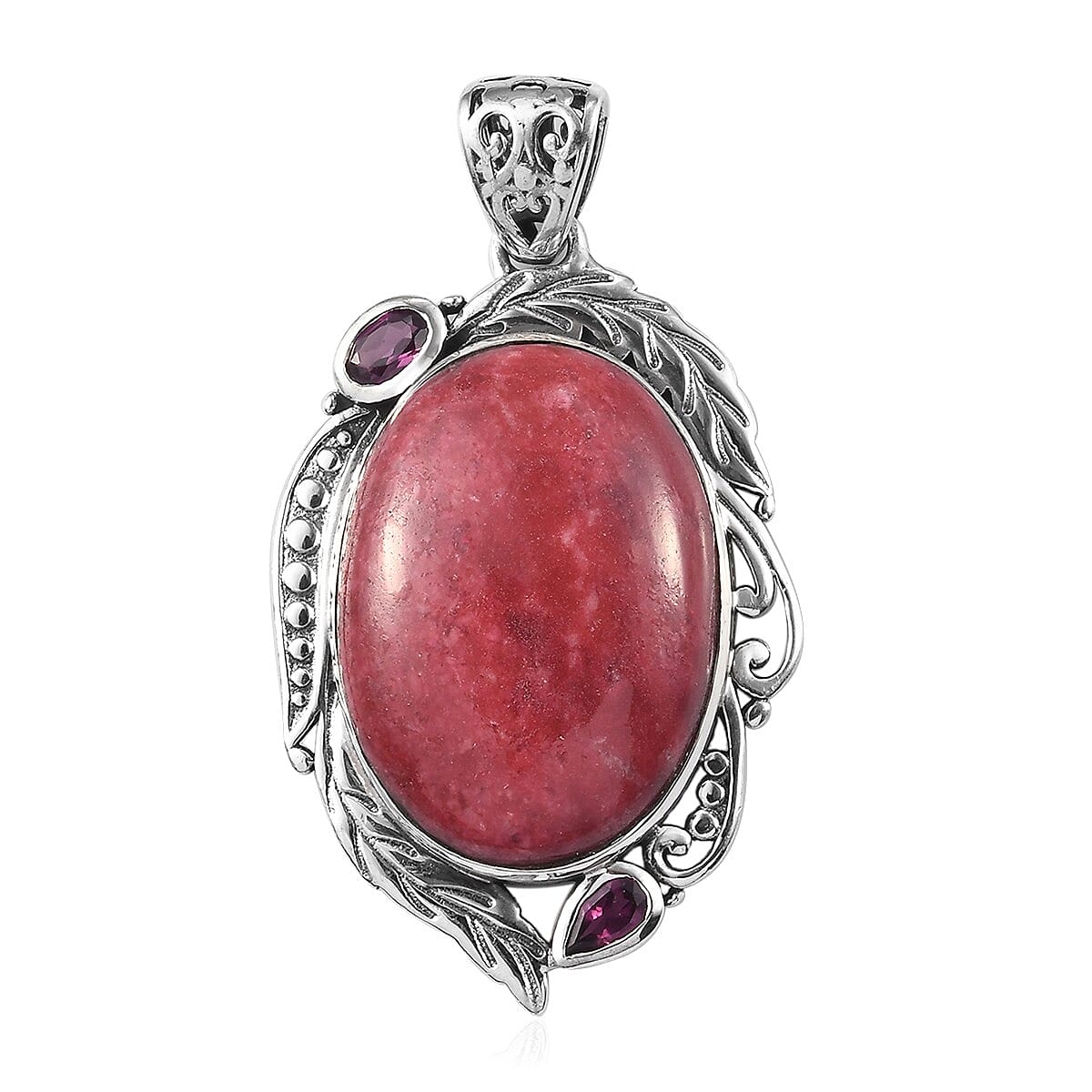 Norwegian Thulite and Orissa Rhodolite Garnet Pendant in Sterling Silver 29.60 ctw