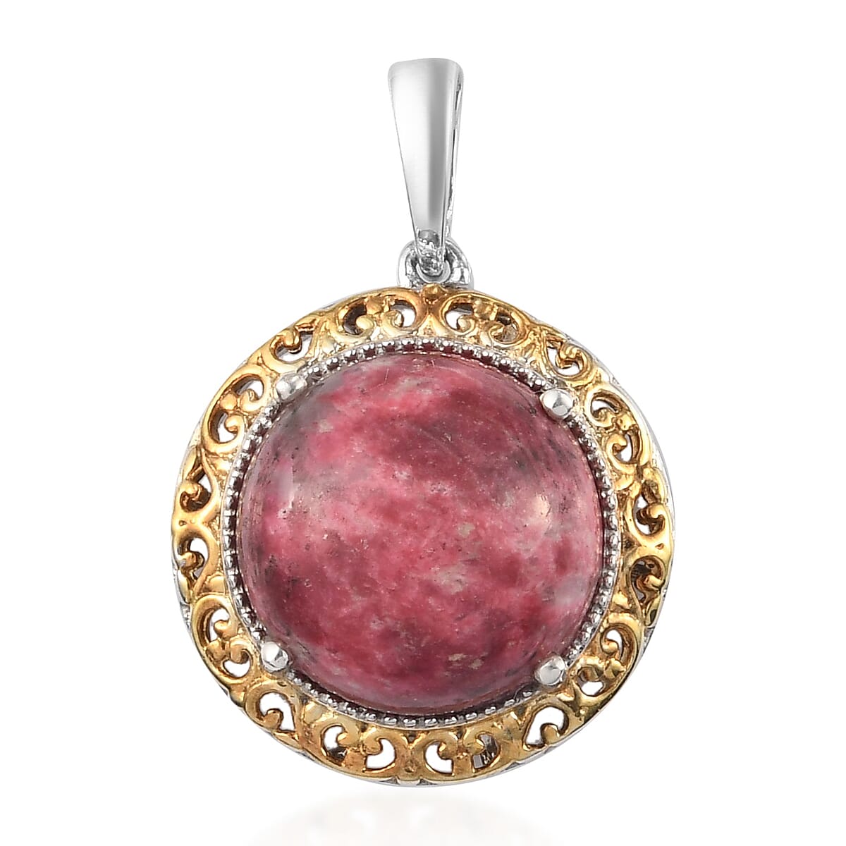 Adorn this Norwegian thulite pendant for a good look. The center gemstone is surrounded by metal beads followed by scrollwork. The platinum and 14K yellow gold metal plating combination give a dual-tone to the pendant, thus making the entire look graceful and shiny.