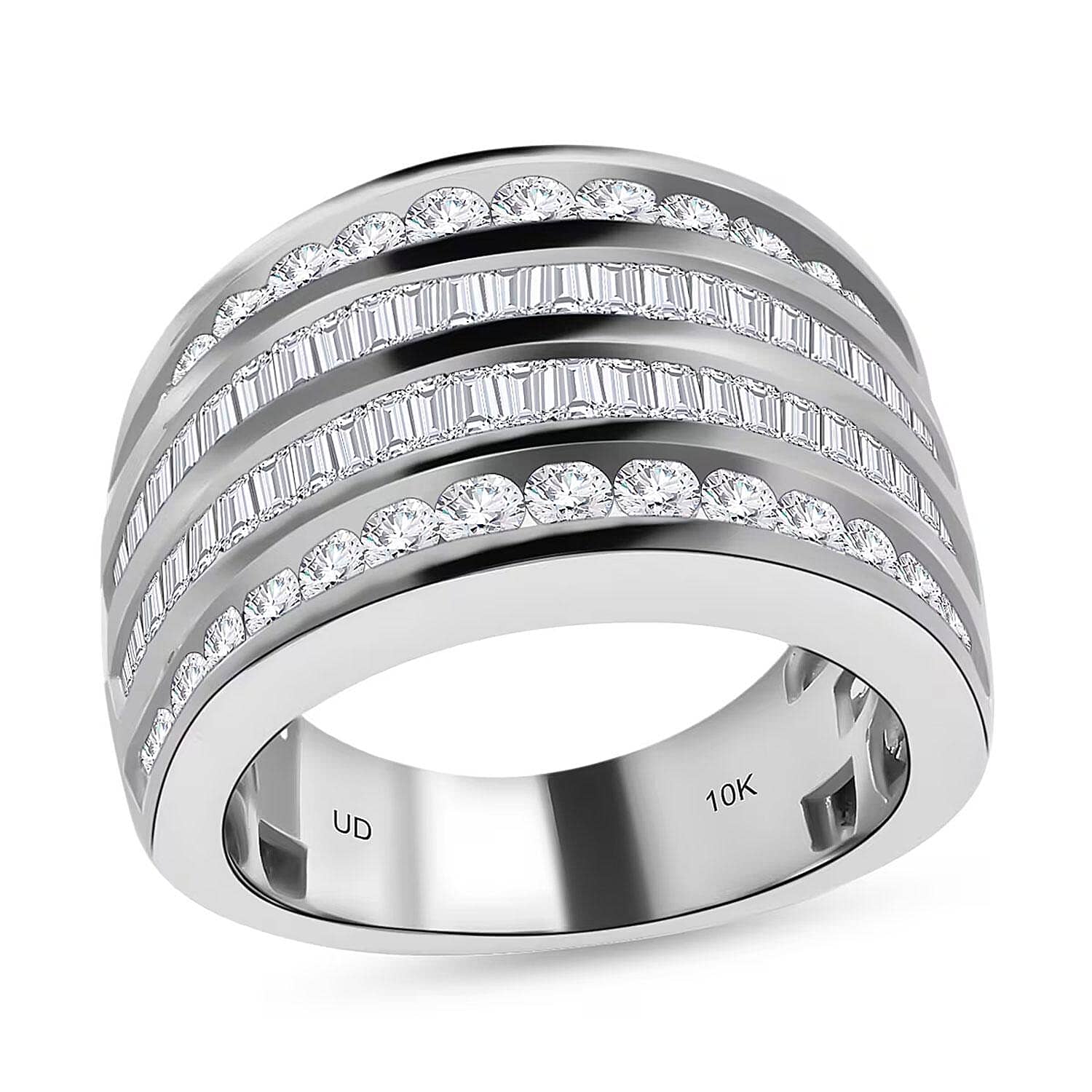 Sparkle beautifully with this diamond ring in 10k white gold for special moments. This luxury wedding band creates an unforgettable impression at every celebration. The elegant multi row ring perfectly complements your bridal jewelry collection.