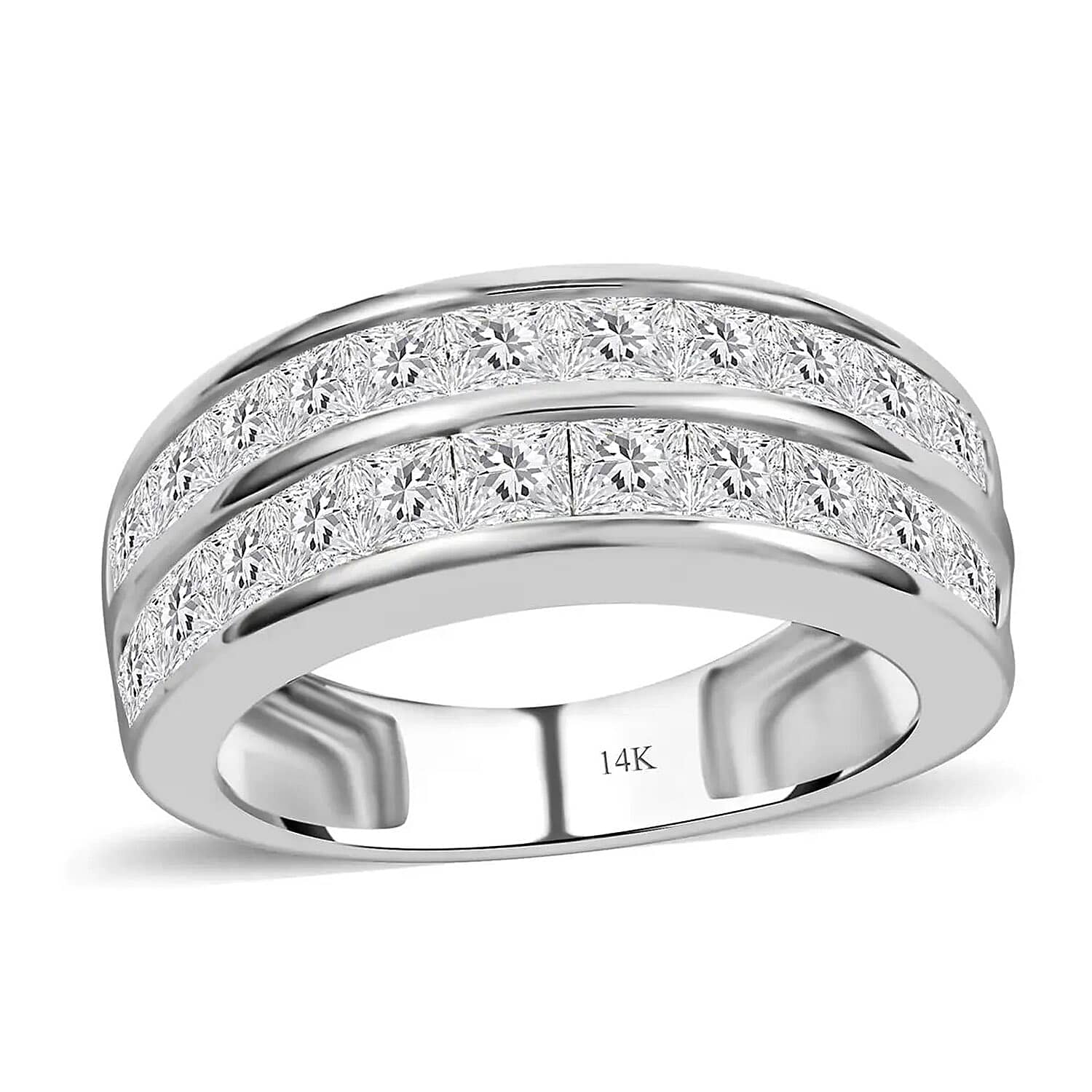 Shine brilliantly with this diamond ring in 14K white gold. This luxurious half-eternity band radiates elegance and beauty for special occasions. You’ll cherish how this wedding band symbolizes lasting commitment with timeless grace.