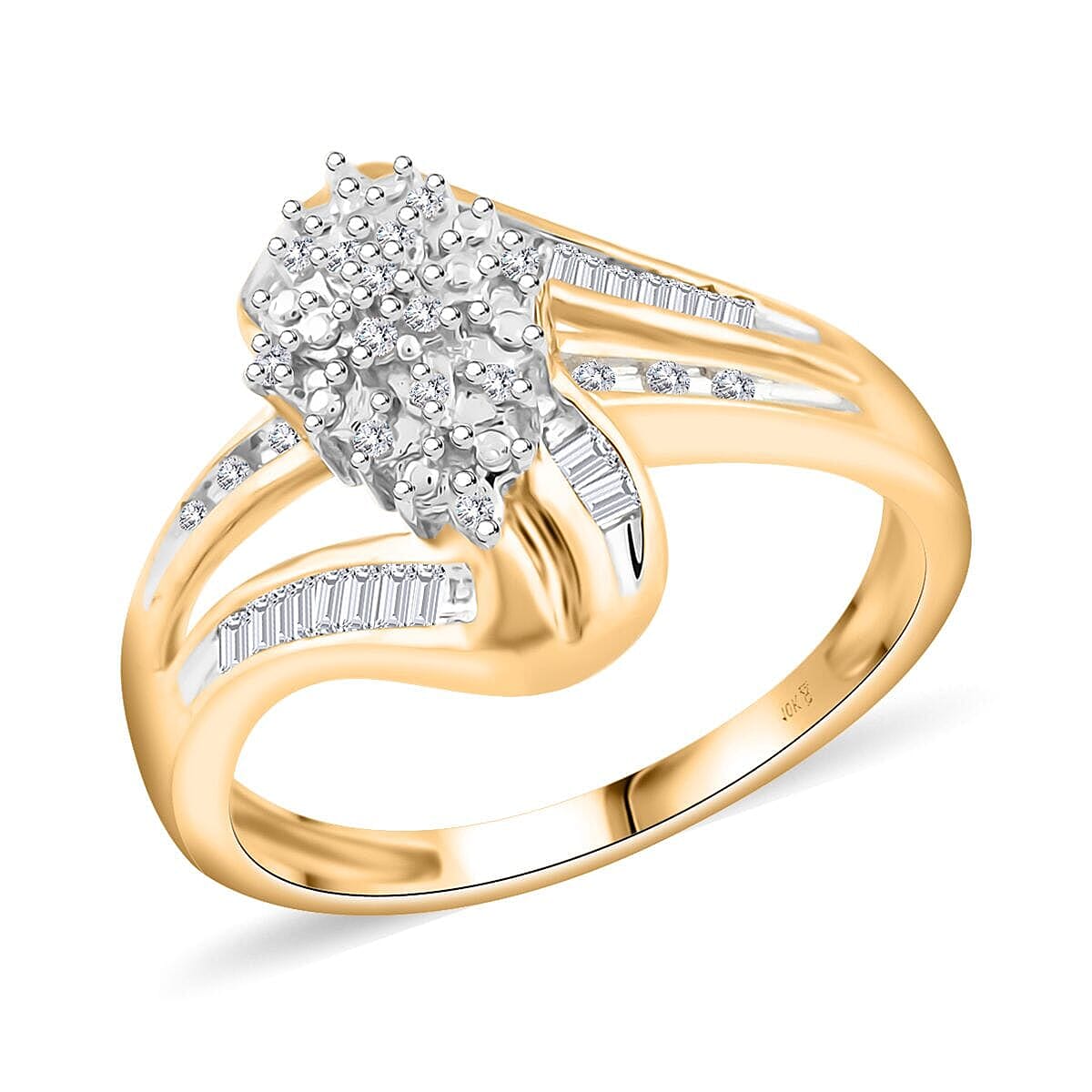 This diamond ring in 10K yellow gold is inspired by the cluster design. Diamonds, known for their shine and brilliance, represent the birthstone of April. All gemstones are securely set in channel and prong settings, crafted with 10K yellow gold for a premium finish, and featuring a bypass shank for added elegance.