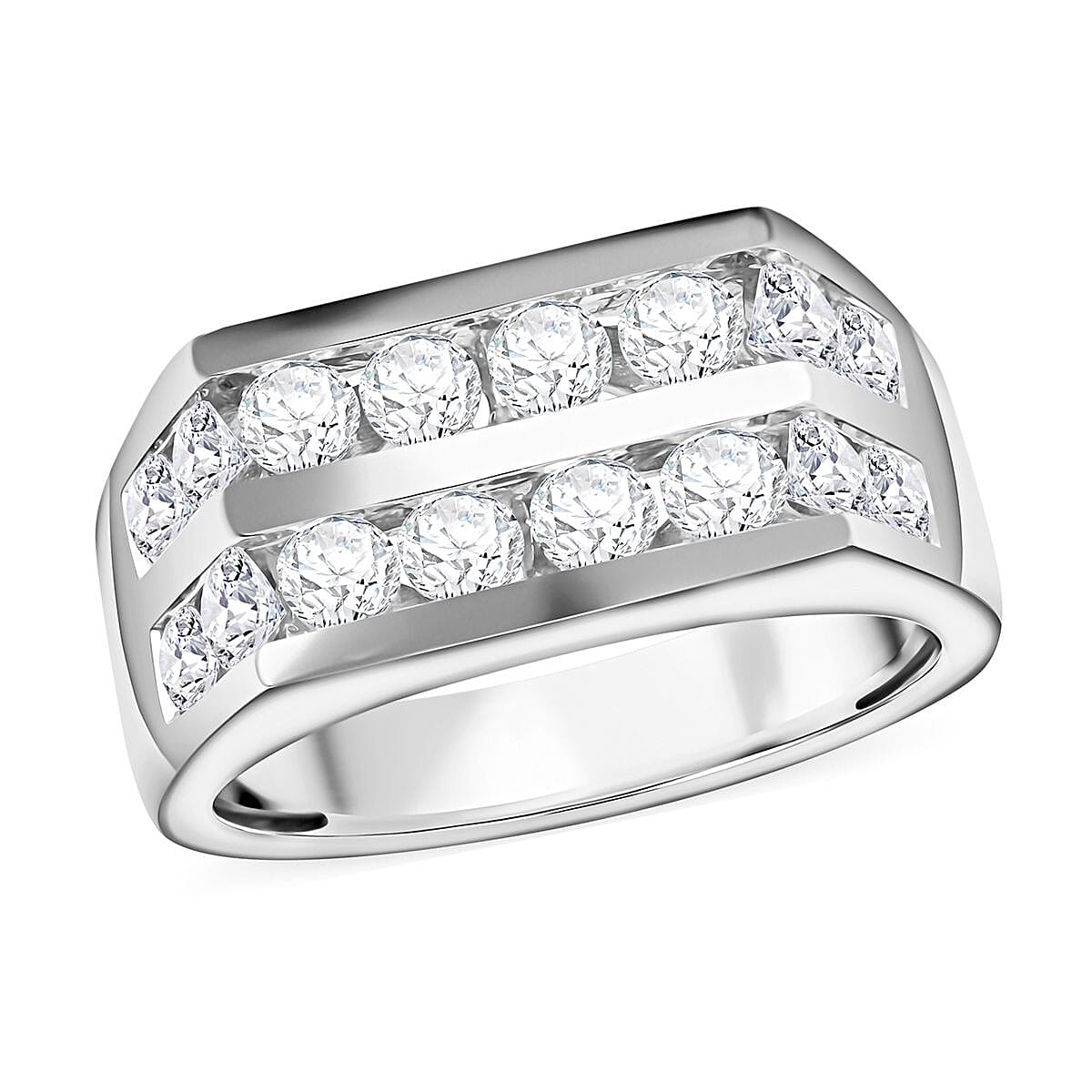 NY Closeout Diamond 2.00 ctw 2 Row Men's Ring in 10K White Gold (Size 10.0) 8 Grams