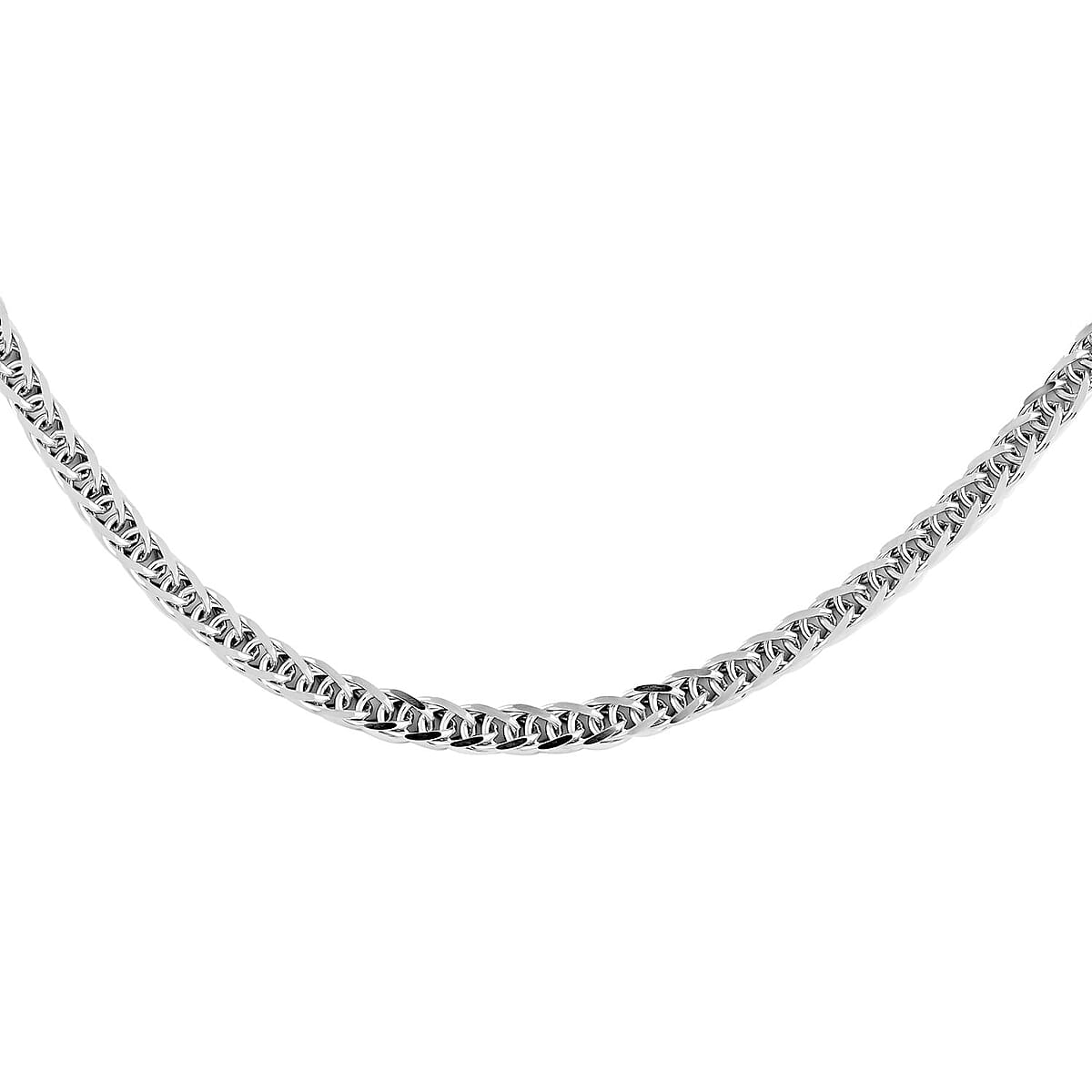 This 14K Italian white gold Spiga wheat chain features oval and twisted links connected and interwound to give a finished look. A unique highlight of this 24 inches long necklace is that small notches in the metal links are created to give a diamond-cut appearance that is furnished to increase the piece’s luster.
