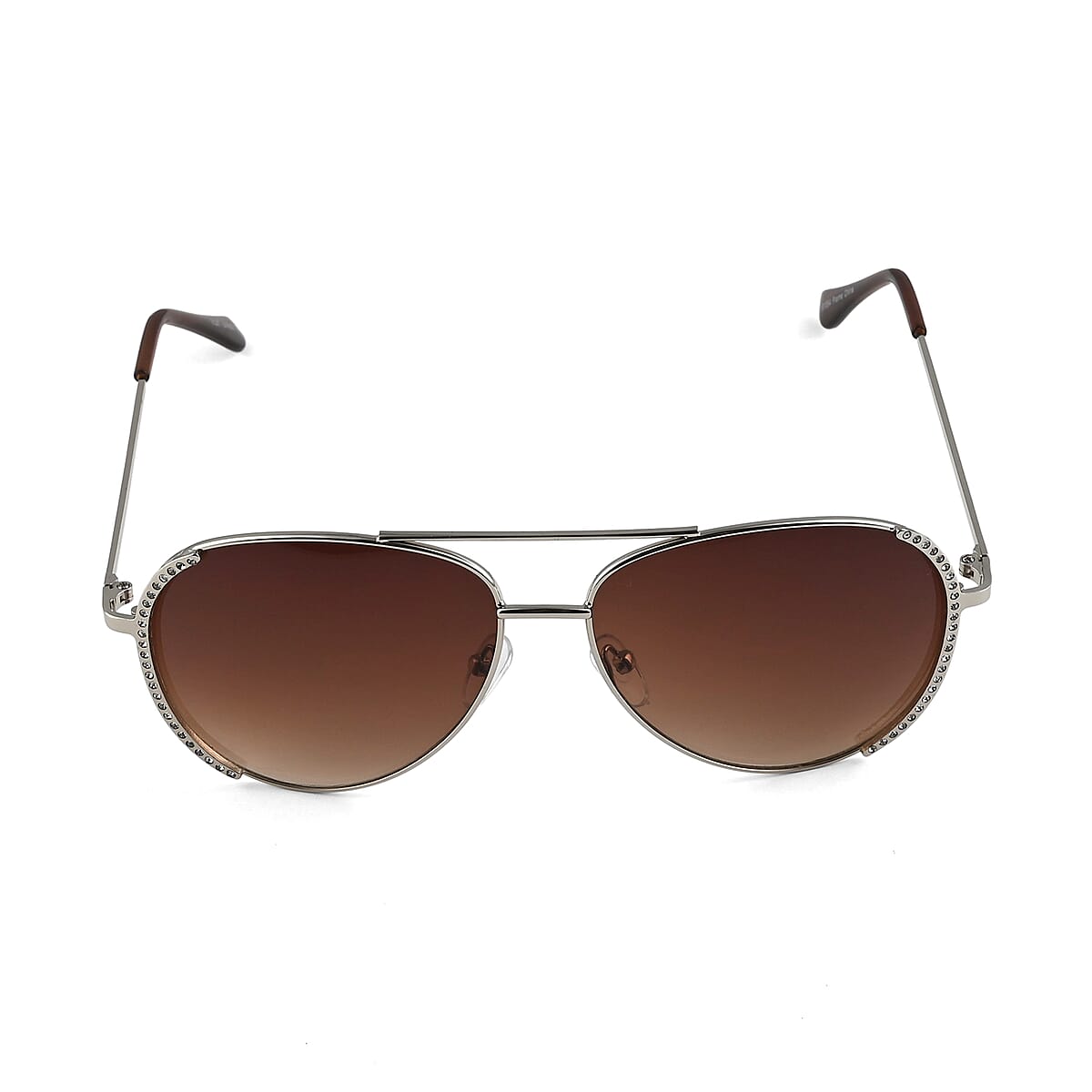 NY CLOSEOUT SolarX UV 400 Brown Gradient Aviator Rhinestone Sunglasses with Case -Goldtone