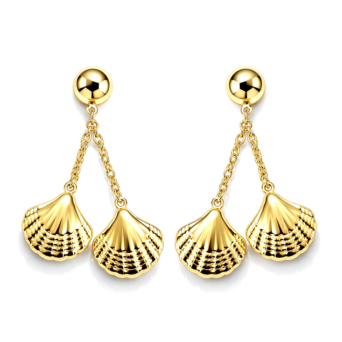 Ocean Shell Dangle Earrings in ION Plated YG Stainless Steel