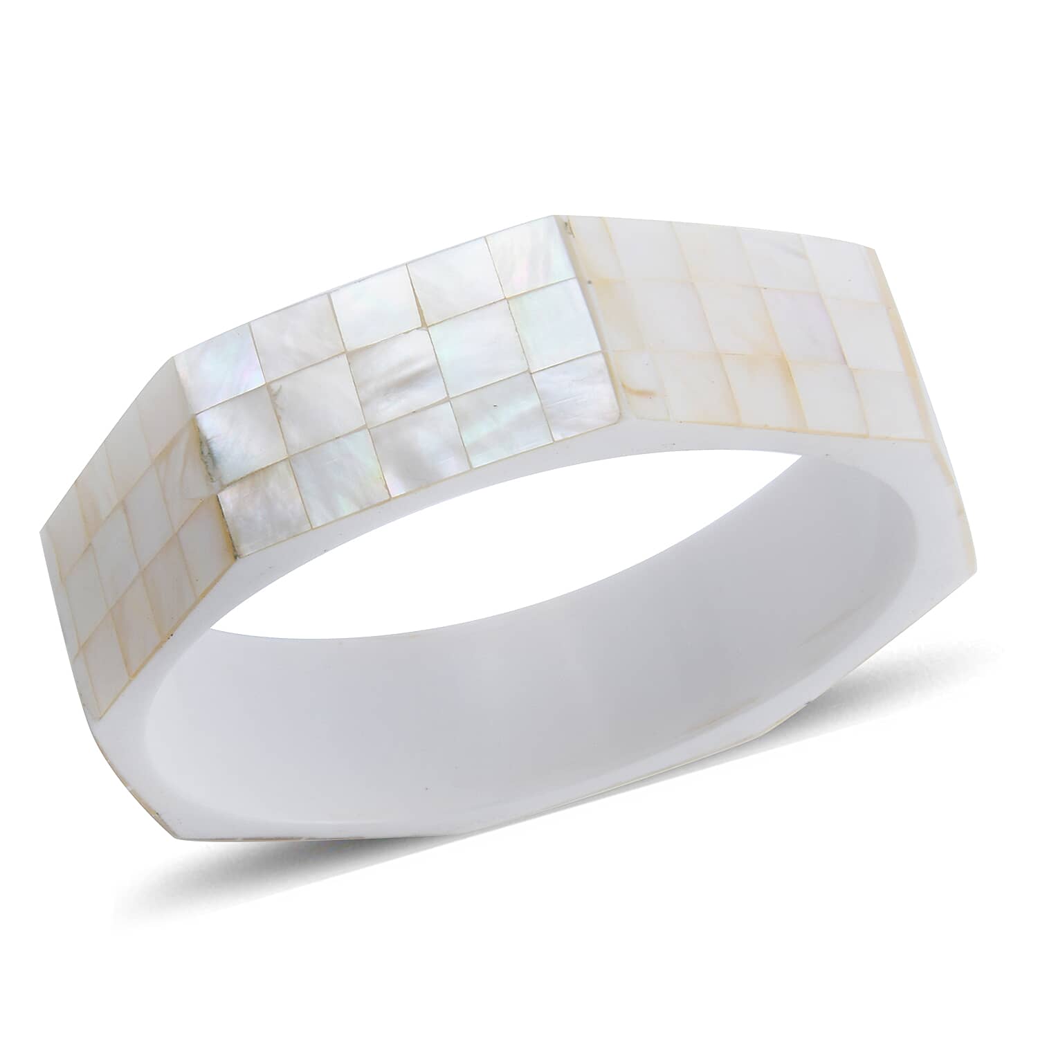 Octagon White Mother of Pearl Inlay Bangle Bracelet With White Inner Resin (8.0 In)