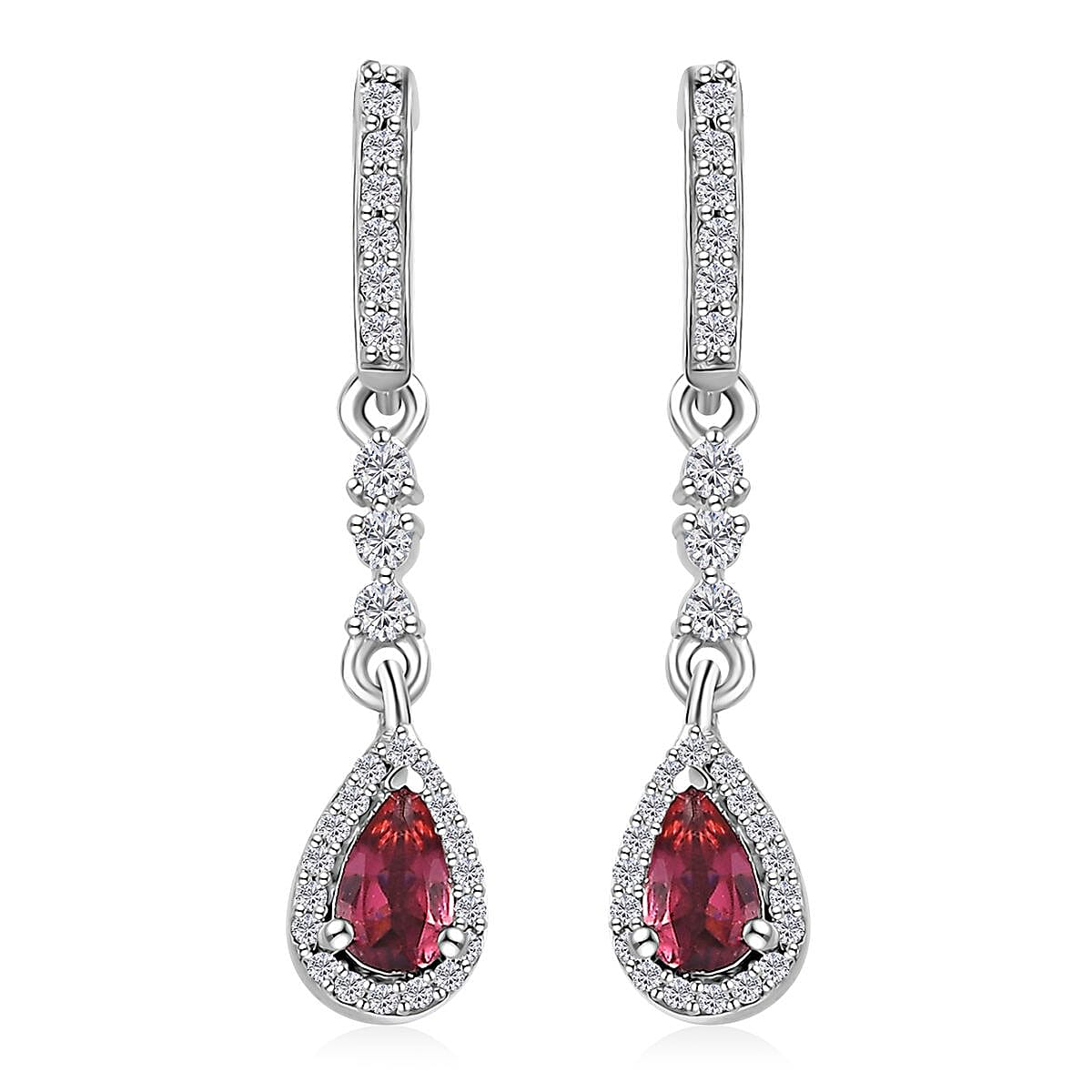 Ofiki Rubellite and White Zircon Drop Earrings in Platinum Over Sterling Silver 0.85 ctw