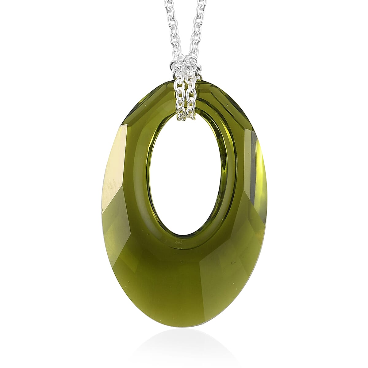 Olivine Crystal Pendant Necklace 20 Inches in Platinum Over Sterling Silver