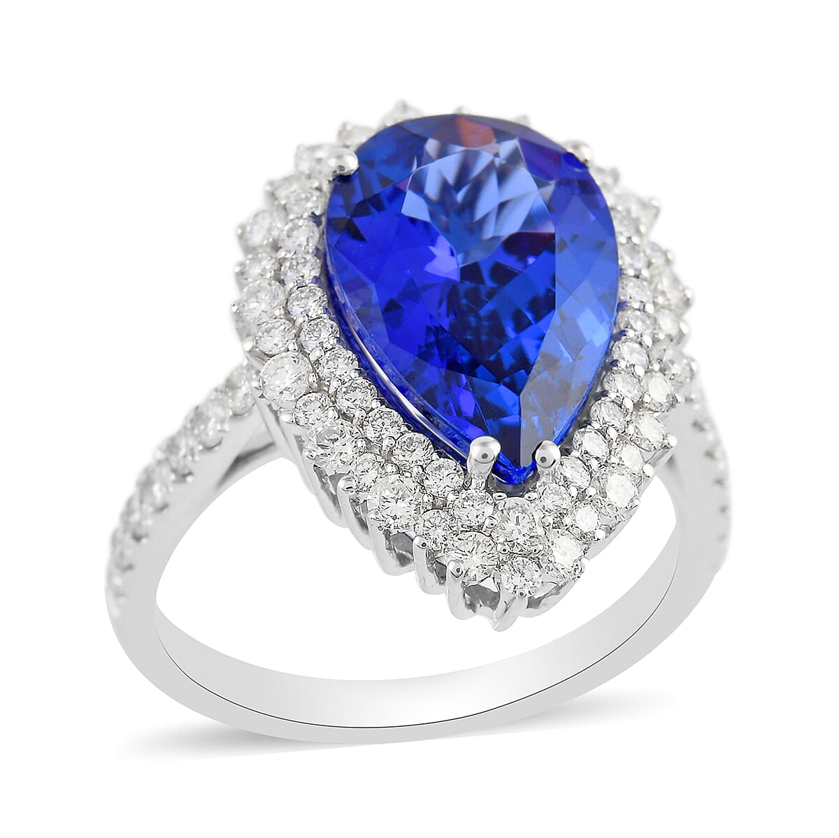 If you are a woman who loves to indulge in self-love, this exquisite tanzanite ring from the RHAPSODY Collection with a dual diamond halo is sure to impress you with its charm. Crafted with expertise and made in durable platinum metal, this stunning dual halo ring features a pear cut AAAA tanzanite set in a prong setting. Bliss to the eyes, this fine piece of jewelry is something you would not like to miss.