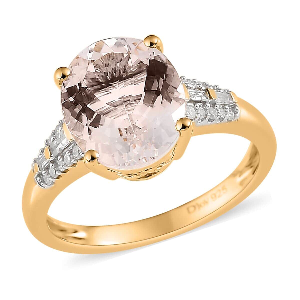 One Time Only Pink Morganite, Diamond Ring in Vermeil YG Over Sterling Silver (Size 10.0) 3.15 ctw