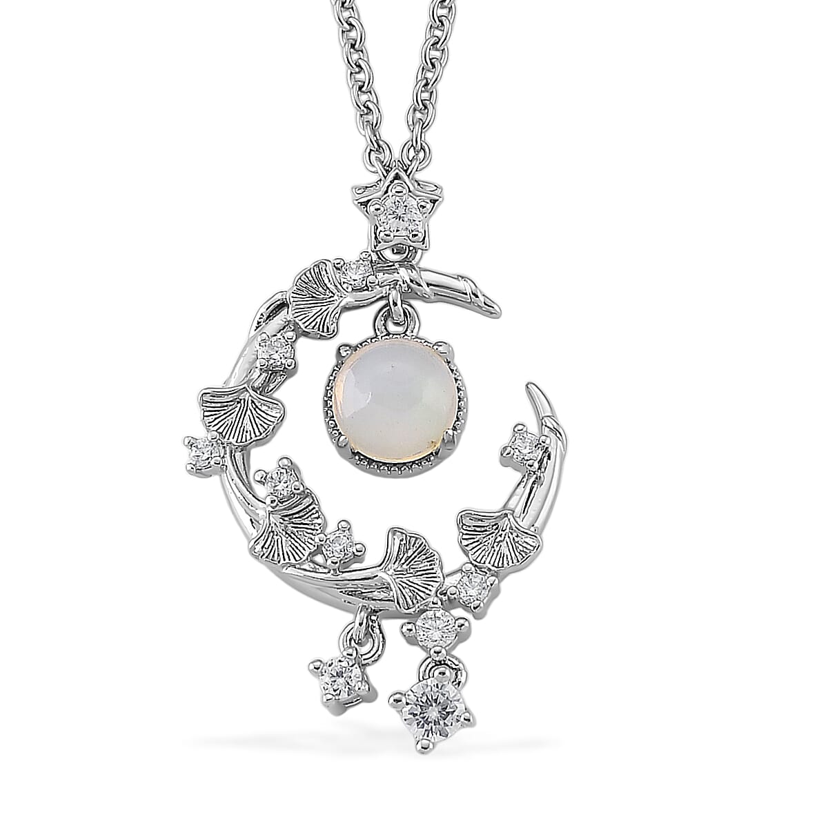 Opal and Simulated Diamond 3.00 ctw Pendant in Silvertone with Stainless Steel Necklace 20 Inches