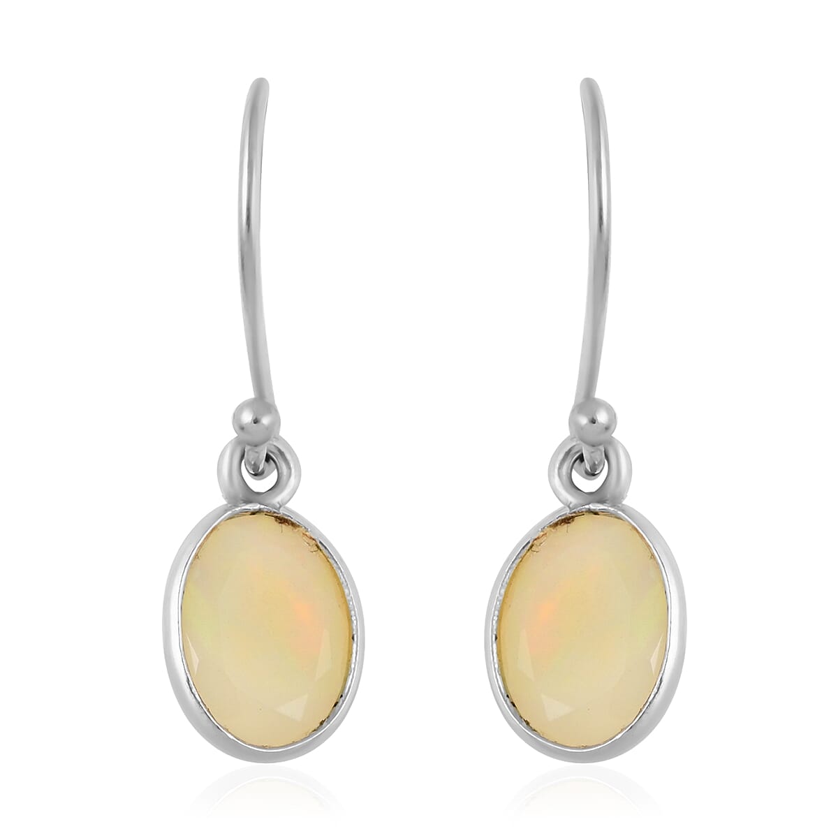 Opal Drop Earrings in Rhodium Over Sterling Silver 1.50 ctw