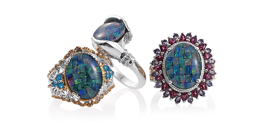 • Australian Mosaic Opals are sometimes referred to as chip opals, or chip opal triplets.
