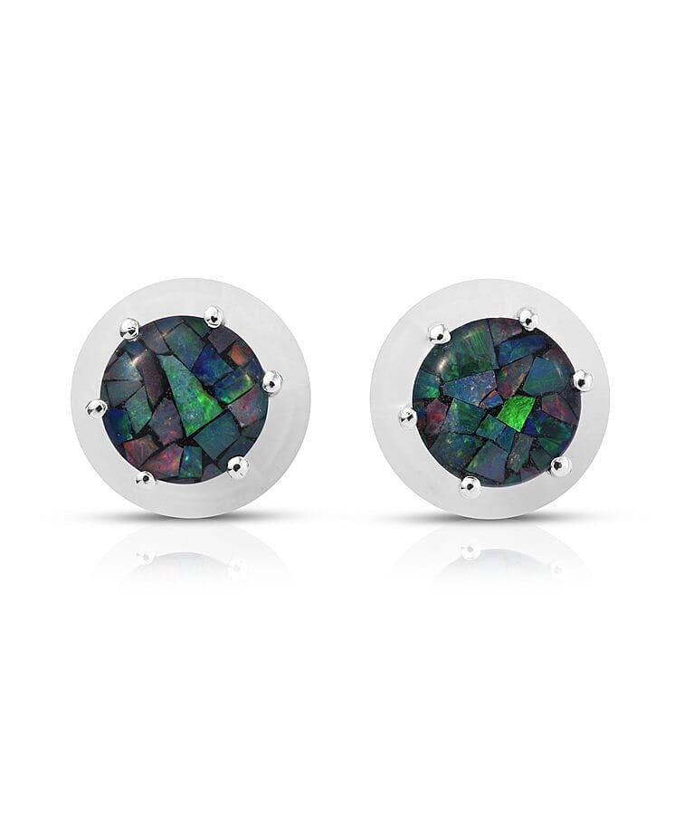 Australian Mosaic Opals are assembled gemstones, though the opal fragments used within this gem originate from Australia. These opal pieces are samples that may be too small for shaping into a gem of its own, or a piece from a larger cutting.