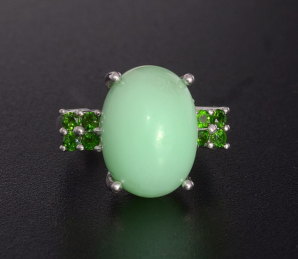 The name opal evolved from the Roman word "opalus" which traces its roots from the Greek's "opallios " meaning to see a change of color. This Greek word is likewise a revision of the ancient Indian Sanskrit's "upala " which means precious stone. The development of this gemstone started millions of years ago when a mixture of silica and water flowed into cracks and holes in the ground. Over time it hardened and solidified to turn into opal. Some opals are hydrophanes meaning that they can soak up water like a sponge. When hydrated the stone becomes more translucent and the play of colors more defined. Peruvian mint green opal has an incredible soft translucent hue. Unlike other opals which diffuse more light and show more dramatic opal fire mint green opal's beauty is found more in its depth of the color and subtle opalescent glow.