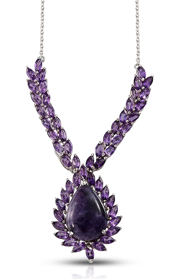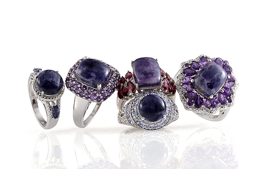 - Colors display a mottled purple and white or dark purple with subtle opalescence.