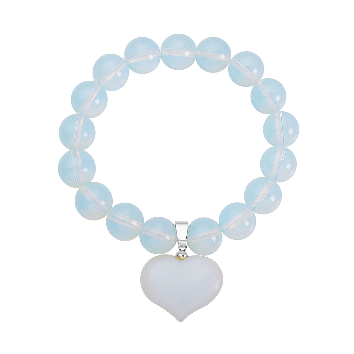 Opalite Beaded Stretch Bracelet with Heart Charm 173.00 ctw