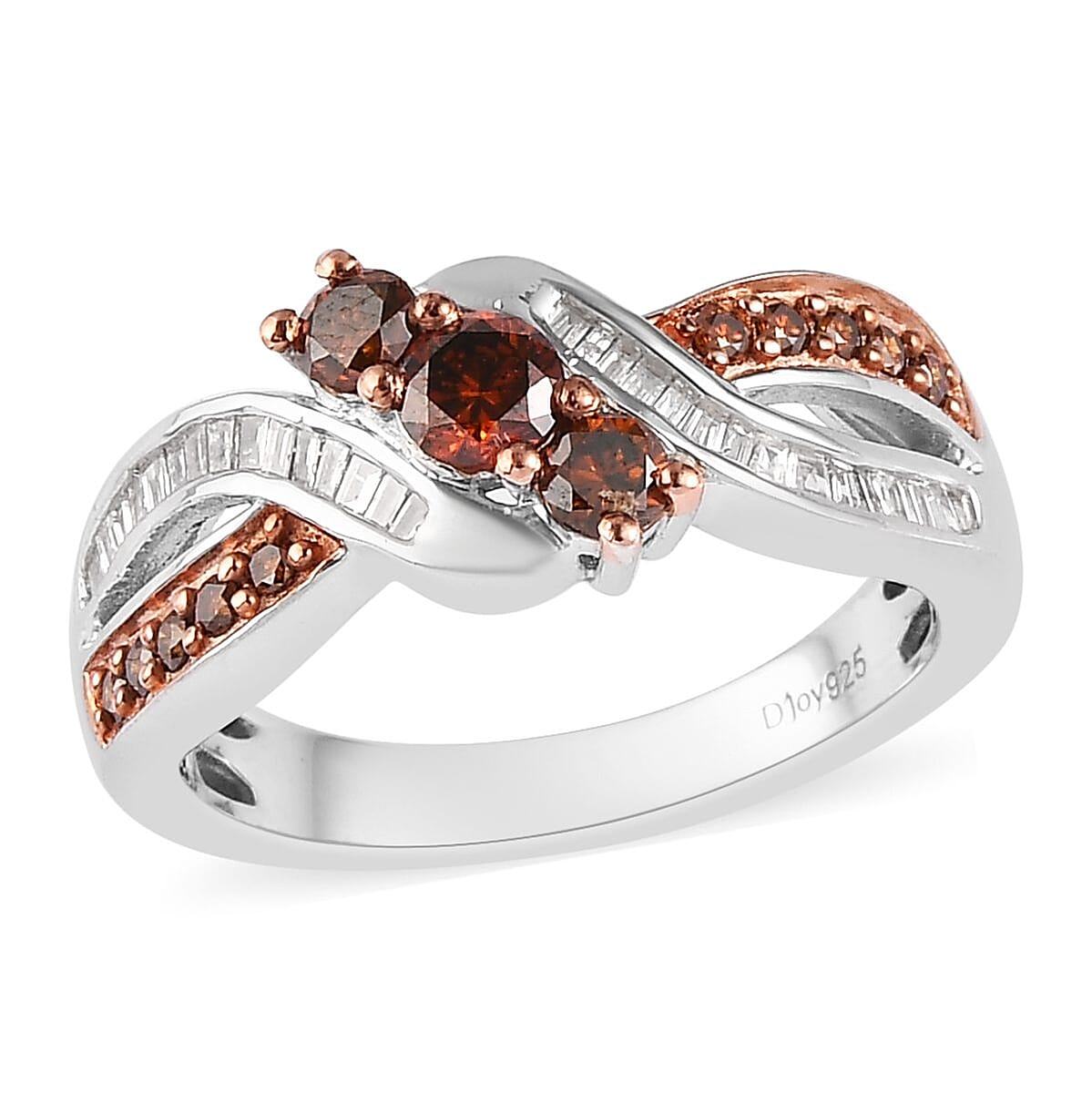 Orange and White Diamond Ring in Platinum Over Sterling Silver (Size 7.0) 0.75 ctw