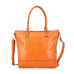 Orange Genuine Leather RFID Protected Tote Bag with Adjustable Detachable Shoulder Strap