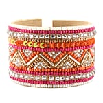 Orange Glass Seed Beaded Chevron Cuff Bracelet in Goldtone