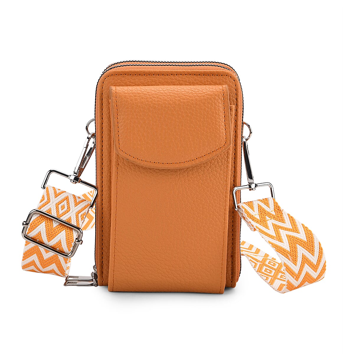 Orange Litchi Embossed Faux Leather Crossbody Bag with Woven Shoulder Strap