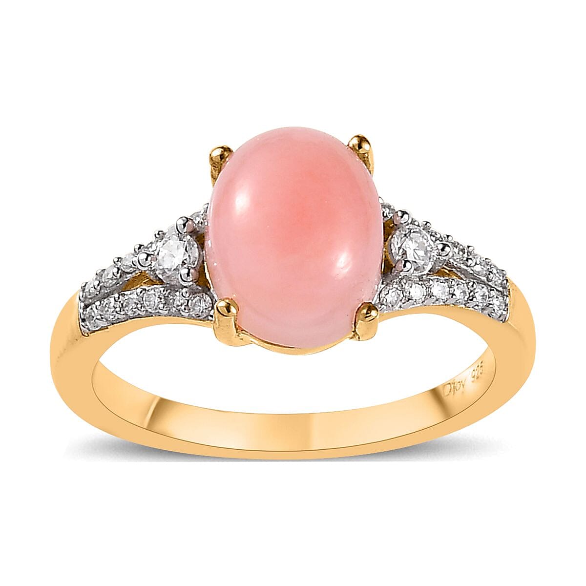Oregon Pink Opal and Moissanite Ring in Vermeil Yellow Gold Over Sterling Silver (Size 7.0) 1.90 ctw