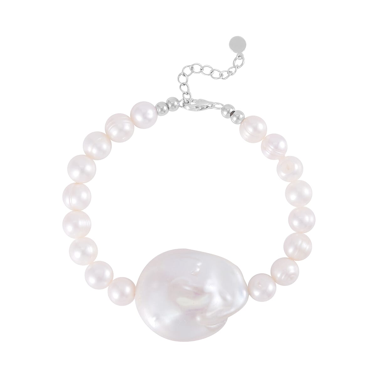 Organic Shape Baroque Pearl, Freshwater Pearl Bracelet in Rhodium Over Sterling Silver