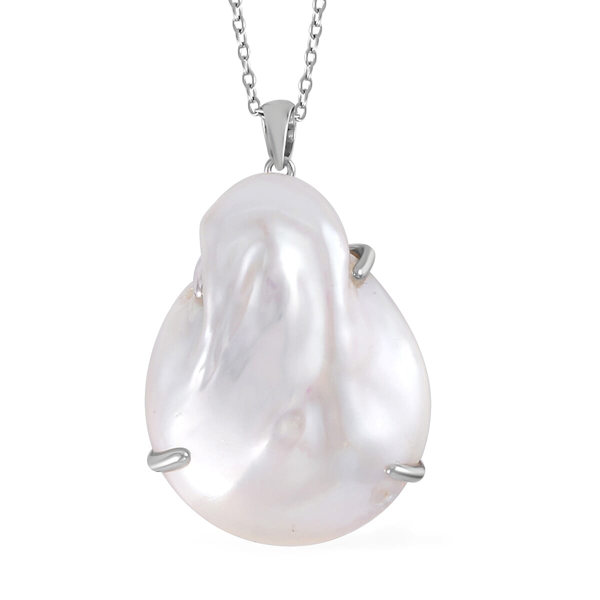 Organic Shape Baroque Pearl Pendant Necklace 18 Inches in Rhodium Over Sterling Silver