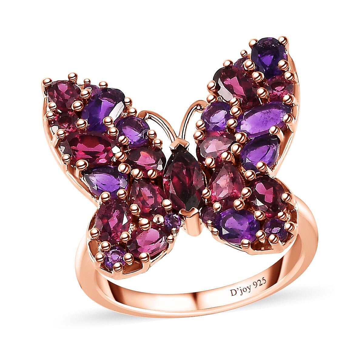 Orissa Rhodolite Garnet and Lusaka Amethyst Butterfly Ring in Vermeil Rose Gold Over Sterling Silver (Size 6.0) 4.25 ctw