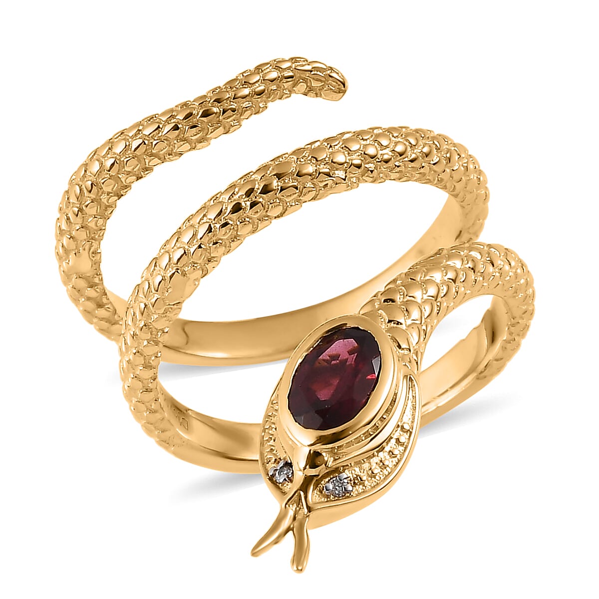 Orissa Rhodolite Garnet and Moissanite Spiral Snake Ring in Vermeil Yellow Gold Over Sterling Silver (Size 6.0) 0.50 ctw