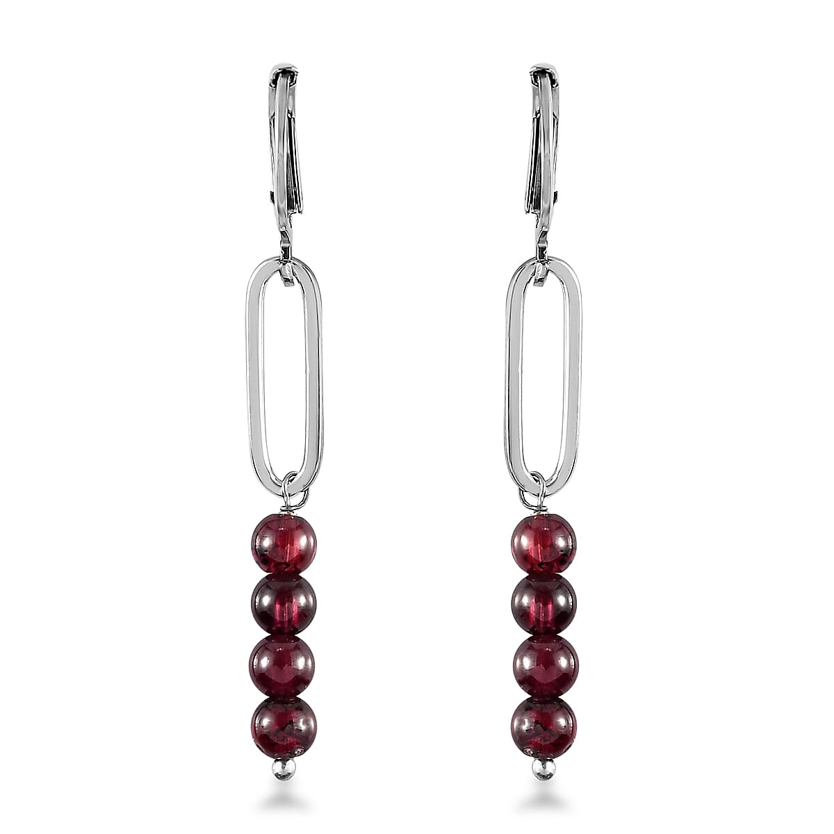 Orissa Rhodolite Garnet Beaded and Paper Clip Dangle Earrings in Stainless Steel 5.10 ctw