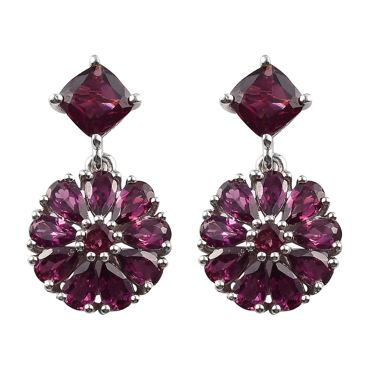 Orissa Rhodolite Garnet Earrings in Platinum Over Sterling Silver 9.40 Grams 7.60 ctw