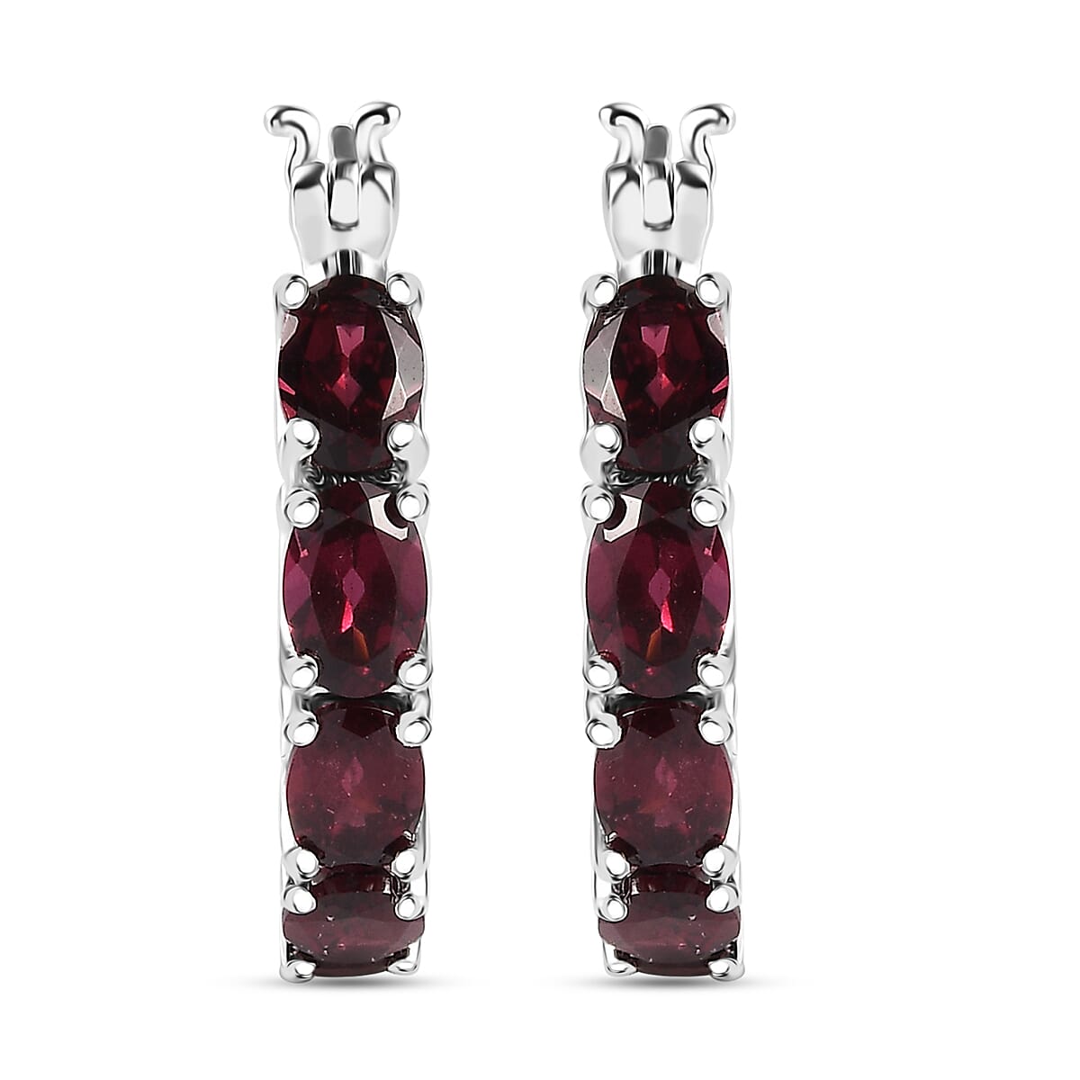 Orissa Rhodolite Garnet Floral Hoop Earrings in Rhodium Over Sterling Silver 5.50 ctw