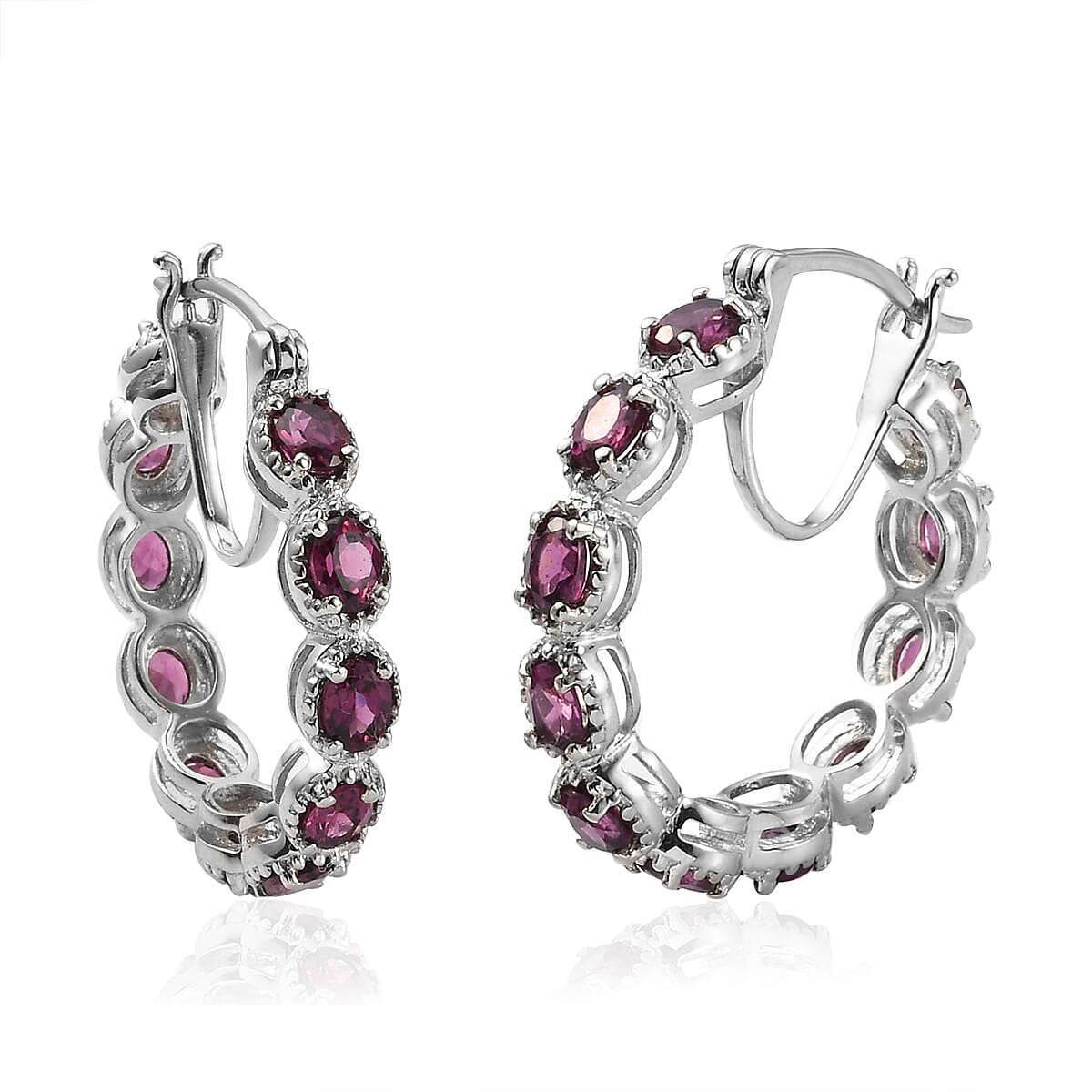 Orissa Rhodolite Garnet Inside Out Hoop Earrings in Platinum Over Sterling Silver 7.20 Grams 4.80 ctw